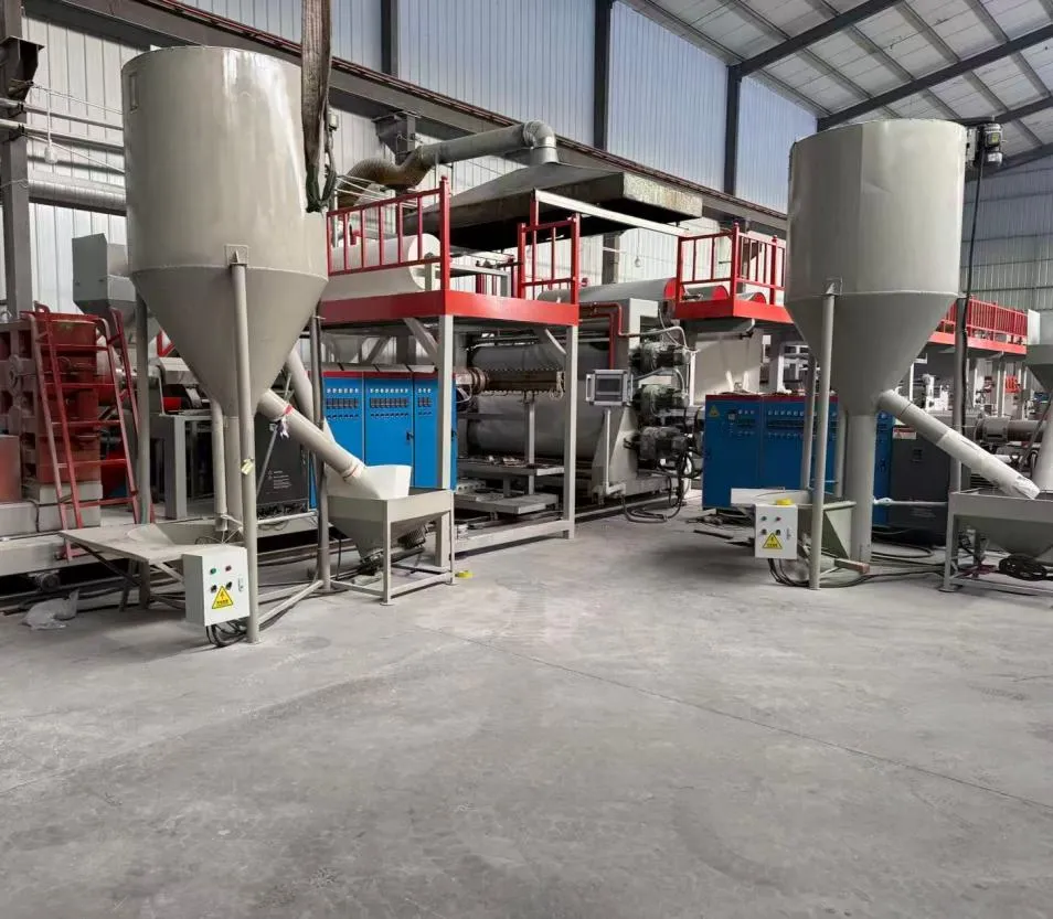 Dosaggio e miscelazione ad alta velocità: miscelare polvere di PVC, plastificante, stabilizzante, agente anti-UV e riempitivo → miscelazione a caldo → miscelazione a freddo → stoccaggio del materiale, con funzione di alimentazione automatica per garantire una miscelazione uniforme